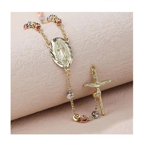 สร้อยข้อมือทางศาสนา joyas นักบุญคาทอลิกกำไลลูกประคำสีทอง