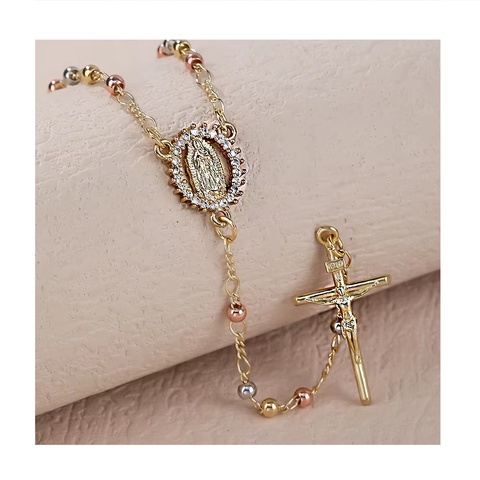 ลูกประคำเครื่องประดับทางศาสนาเครื่องประดับทอง electroplated Virgen de Guadalupe เครื่องประดับทองคริสเตียนศาสนา