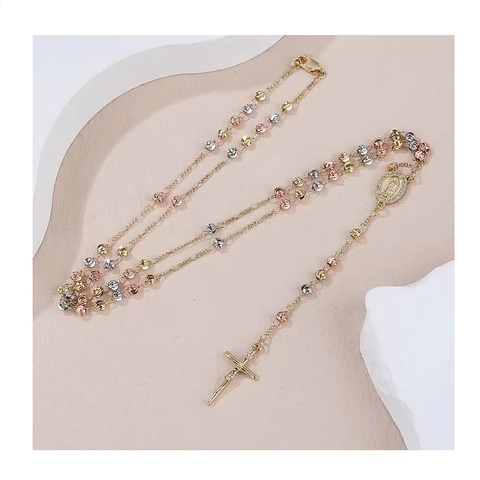 สร้อยคอลูกประคำ18K สีทองใส3เหรียญสำหรับ Virgin Mary