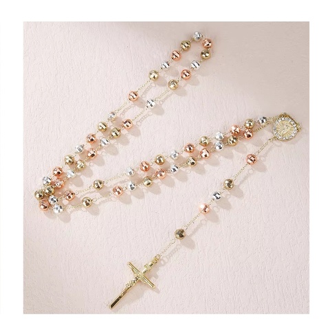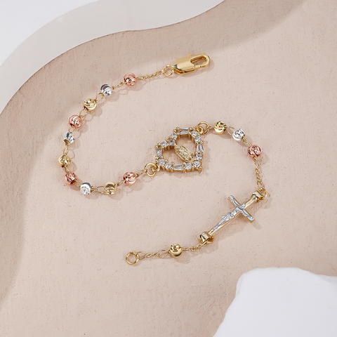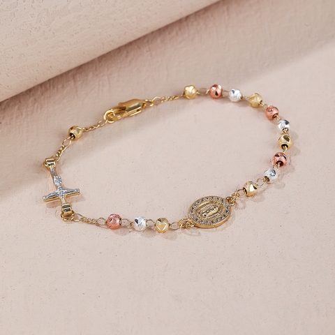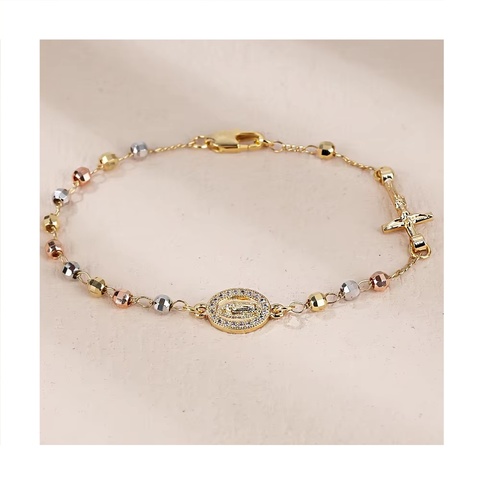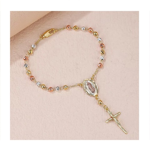 เสน่ห์กุหลาบ 18 พันทองชุบศาสนาพระแม่มารีสร้อยข้อมือสามสีลูกประคําประดับสร้อยข้อมือ