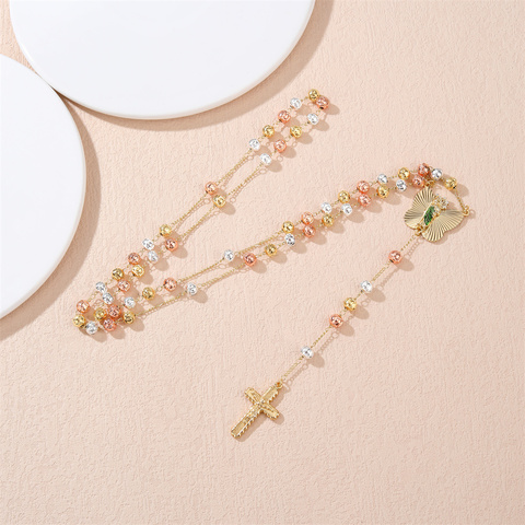 Bán Buôn 18K Mạ Vàng Tôn Giáo Mân Côi Vòng Cổ Guadalupe Chúa Giêsu Chữ Thập Tricolor Tôn Giáo Công Giáo Đảng Quà Tặng Chuỗi Loại